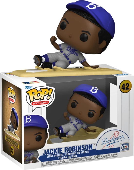 This Pop! features Jackie Robinson wearing his iconic #42 Dodgers uniform, and sliding to the home plate.