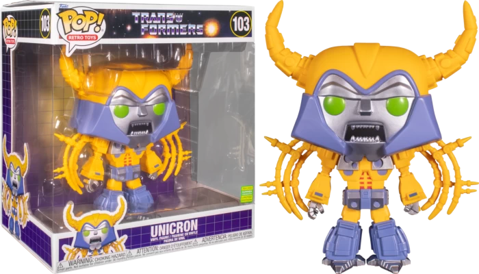 This Jumbo-Sized Pop! features the Lord of Chaos, Unicron, who is dedicated to consuming the multiuniverse. His massive form is powered by the consumption of planets, moons, stars, and even the very fabric of existence.Â
